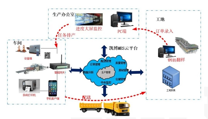 并且,凱博科技攜手中國鐵道科學研究院集團有限公司,開發(fā)凱博鋼筋加工管理軟件系統(tǒng)和鋼筋加工遠程控制系統(tǒng),打造智能控制中心。鋼筋加工管理軟件系統(tǒng)以鋼筋加工過程中物資流管理為核心,借助工業(yè)互聯(lián)網(wǎng)、云服務、智能設備等技術(shù)手段,實現(xiàn)多項目多任務遠程訂單管理,實現(xiàn)訂單排產(chǎn)、生產(chǎn)訂單分發(fā)、生產(chǎn)標牌打印、成品完成報工,成品出入庫等功能,同時能夠以電子大屏實現(xiàn)項目訂單動態(tài)實時監(jiān)控、加工廠整體運營狀態(tài)的中心化顯示。鋼筋加工遠程控制系統(tǒng),可實時顯示加工場各種設備生產(chǎn)狀態(tài),同時實現(xiàn)中控室對現(xiàn)場設備啟動和停止的遠程控制,造就了高鐵梁場鋼筋加工數(shù)字化新模式!