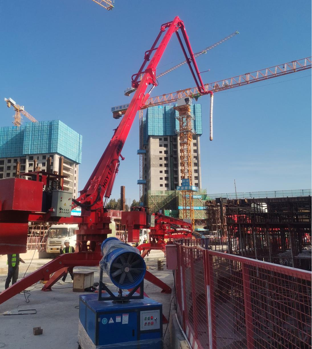 廊坊凱博建設(shè)機(jī)械科技有限公司研發(fā)的4臺(tái)HGY17移動(dòng)式液壓混凝土布料機(jī)(JAINE)在昆明市綜合交通國(guó)際樞紐建設(shè)項(xiàng)目中亮相。