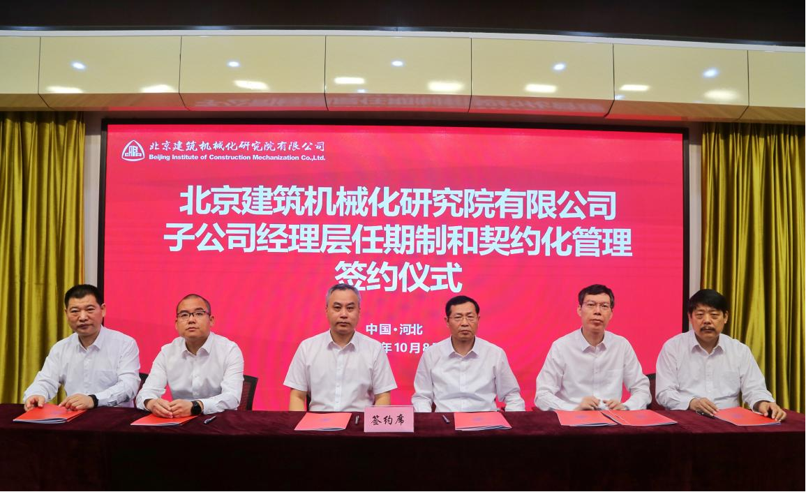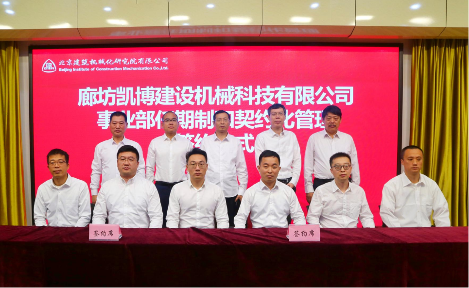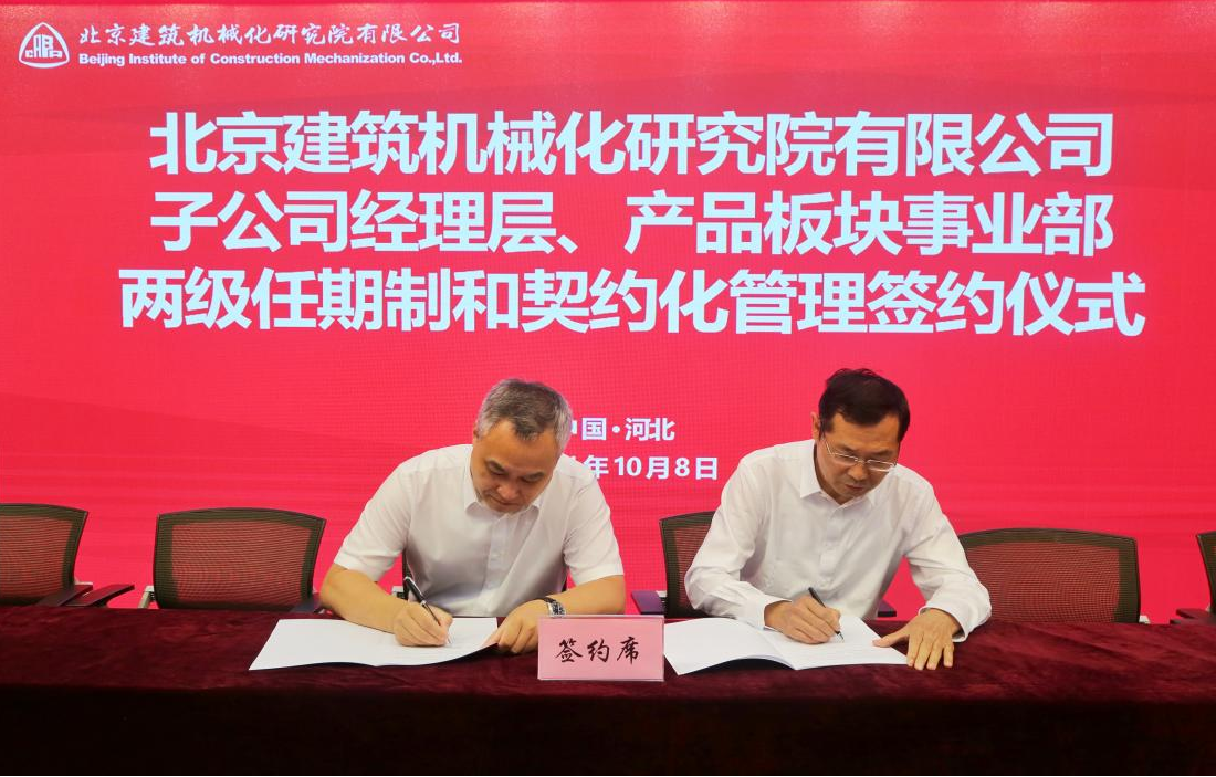 10月8日,北京建機(jī)院舉行所屬子公司廊坊凱博建設(shè)機(jī)械科技有限公司以及公司所屬事業(yè)部?jī)杉?jí)經(jīng)理層成員任期制與契約化管理簽約儀式。北京建機(jī)院領(lǐng)導(dǎo)、公司部門(mén)以上負(fù)責(zé)人等共計(jì)80余人參加簽約儀式。